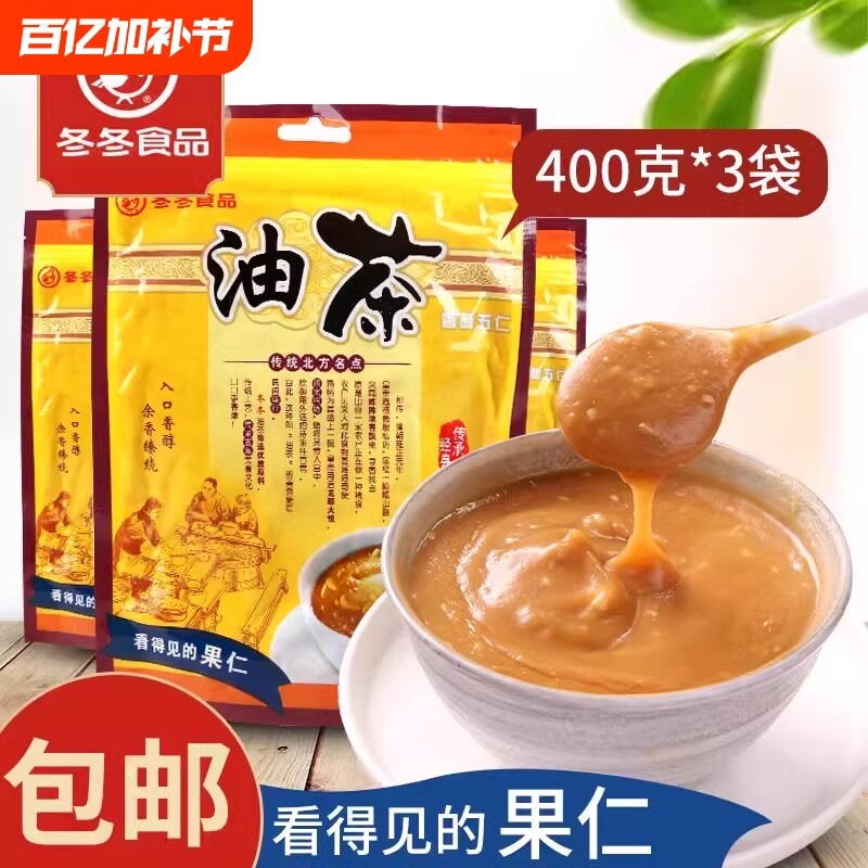 📚 沈阳特产冬冬油茶面香酥五仁甜油茶袋装油茶早餐400g*3袋包邮老式