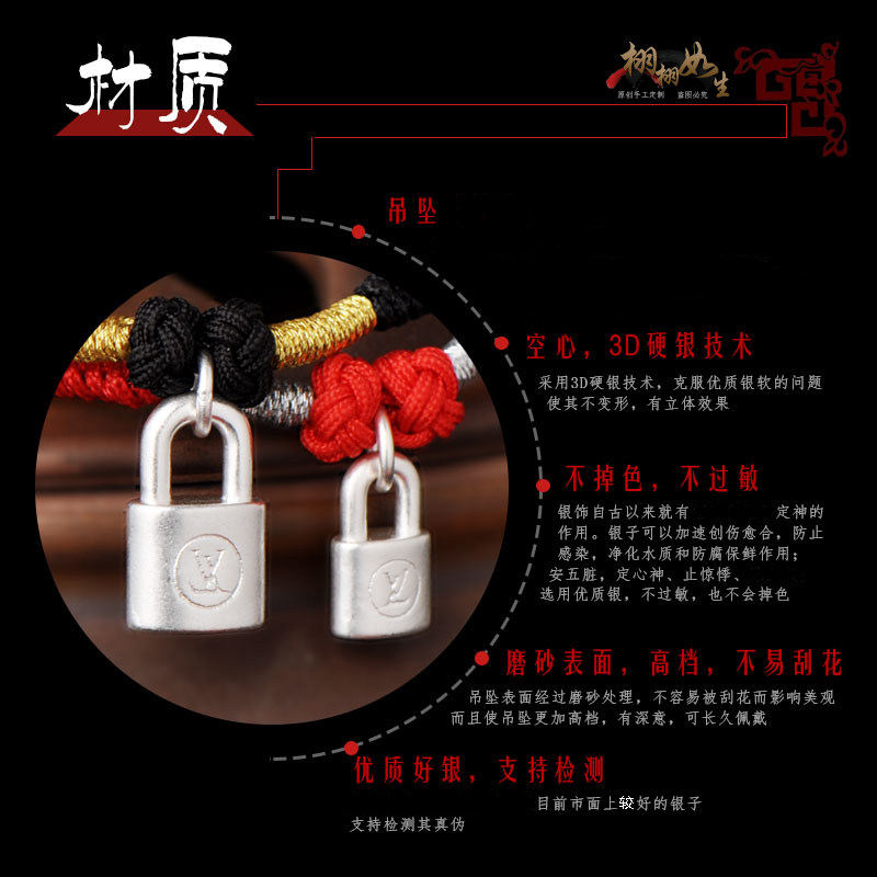 💥独家种草!刻字999纯银情侣同心锁头手链,券后仅89.9!💖爱情的见证者