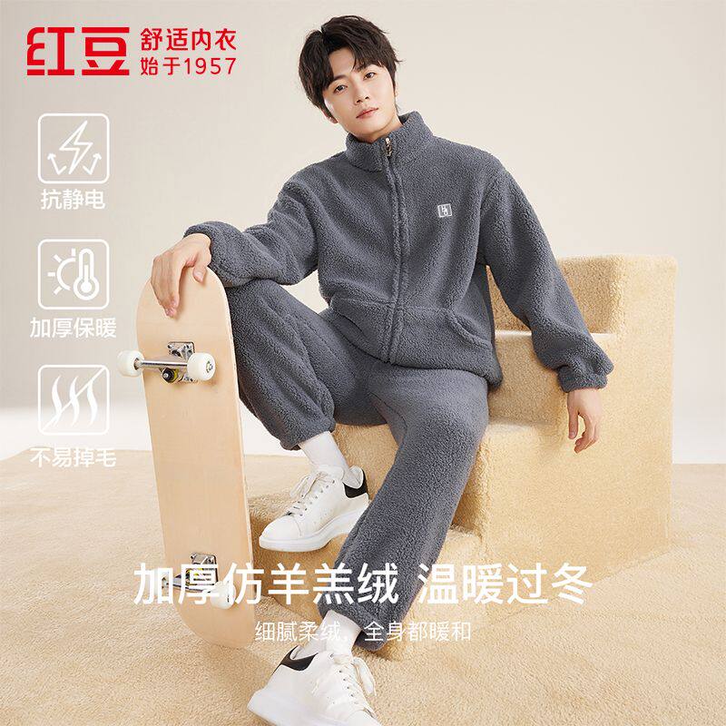 📚 红豆珊瑚绒睡衣男女士冬季羊羔绒抗静电长袖可外穿加厚家居服套装