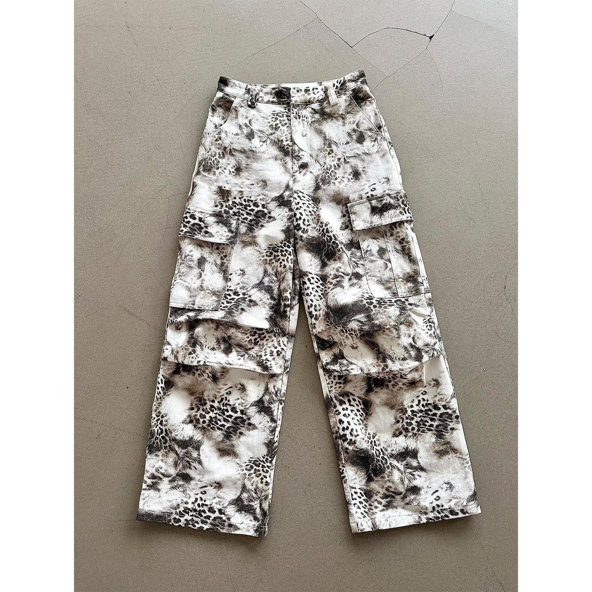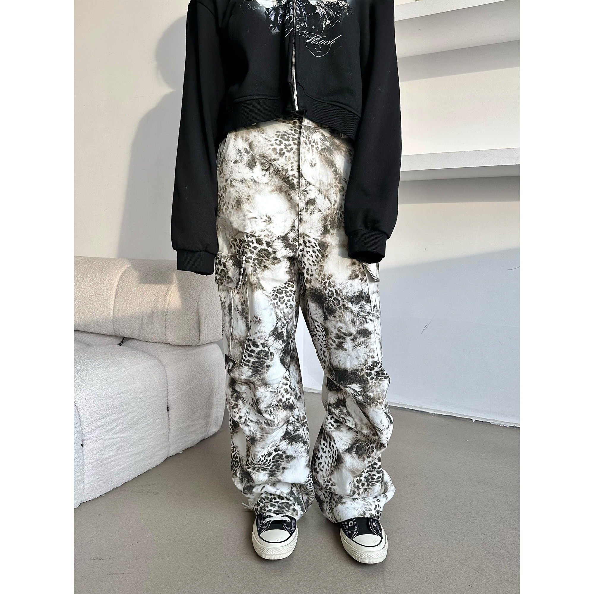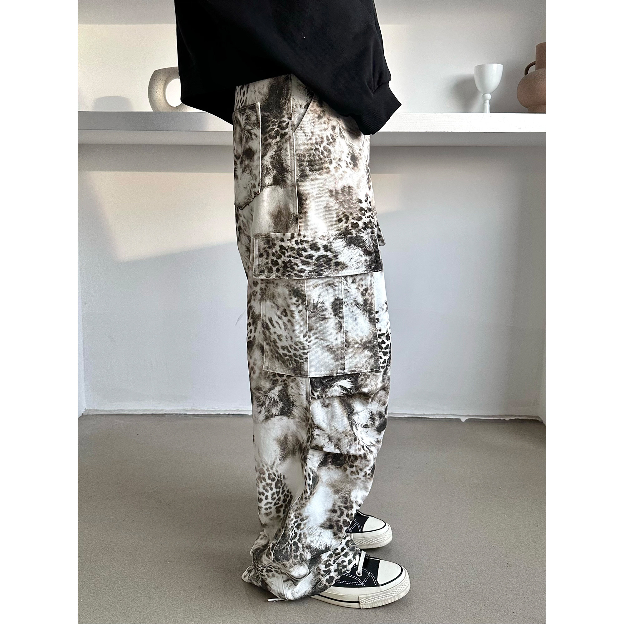 📚 Erole 豹纹仿皮草数码渐变印花cargo工装裤 百搭宽松直筒街头长裤