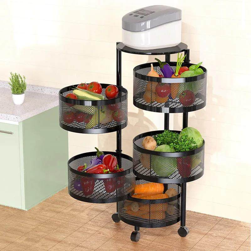 📚 厨圆房形置旋转果蔬菜落地物架可移动可纳拆卸免-安装落地收储物