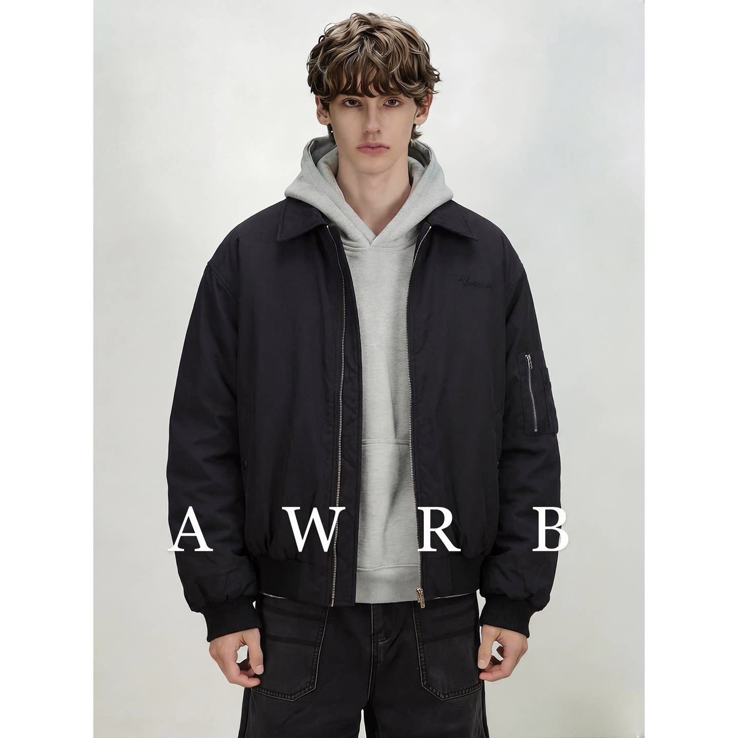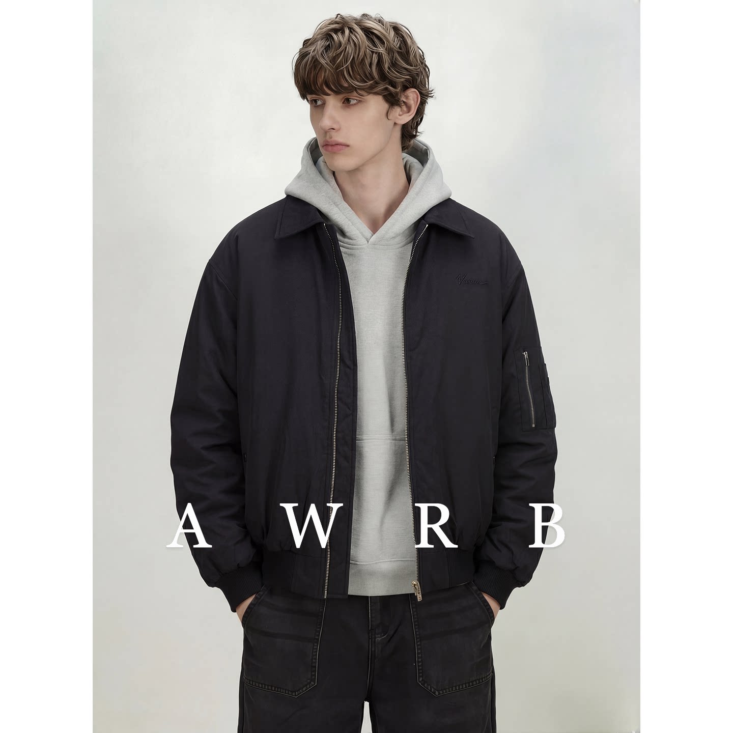 📚 AWRB美式复古cleanfit翻领刺绣棉服男宽松休闲百搭简约外套