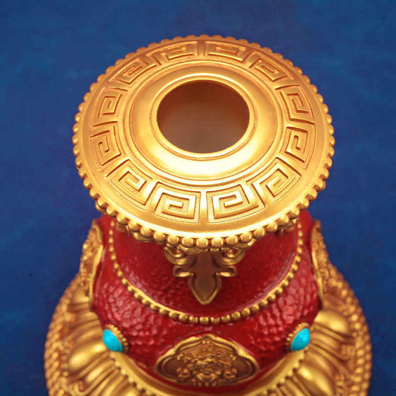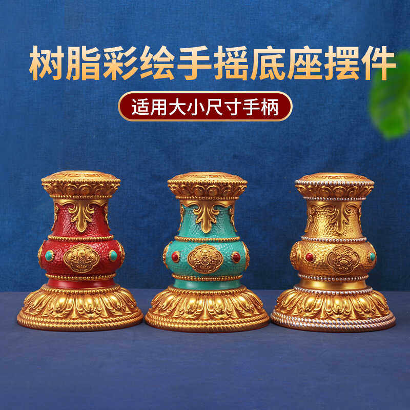 📚 彩绘长柄手摇转金轮底座彩绘树脂转经简八吉祥座子锡杖家用大号