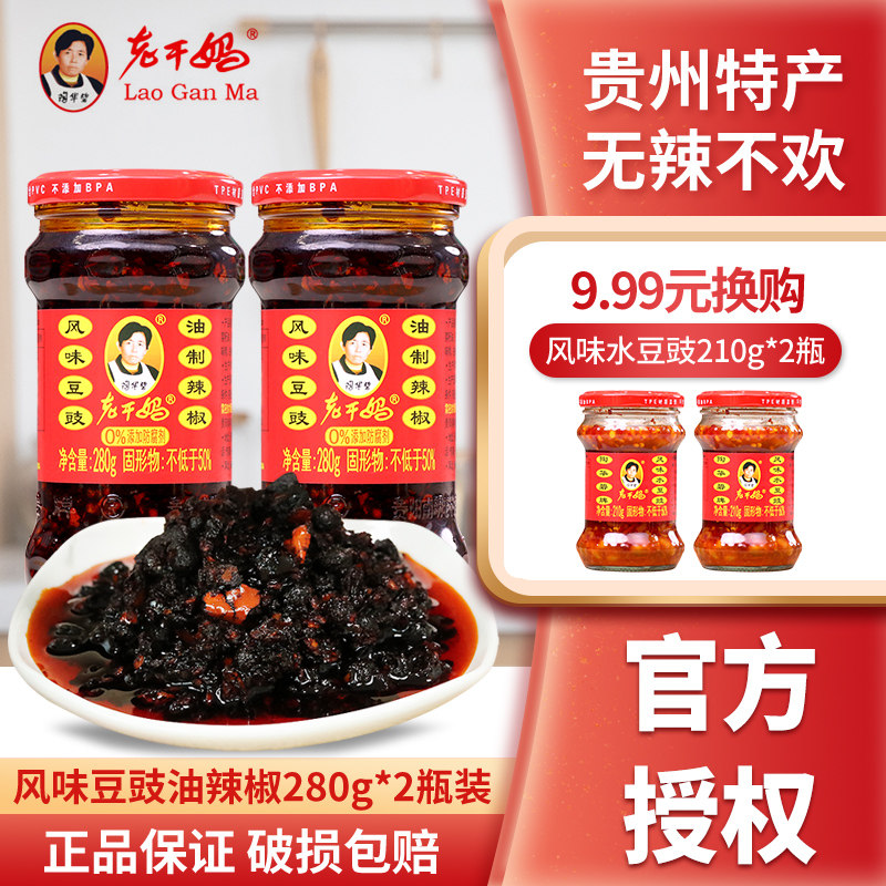 📚 老干妈风味豆豉油制辣椒280g*2瓶装贵州特产香辣酱拌饭拌面调味酱