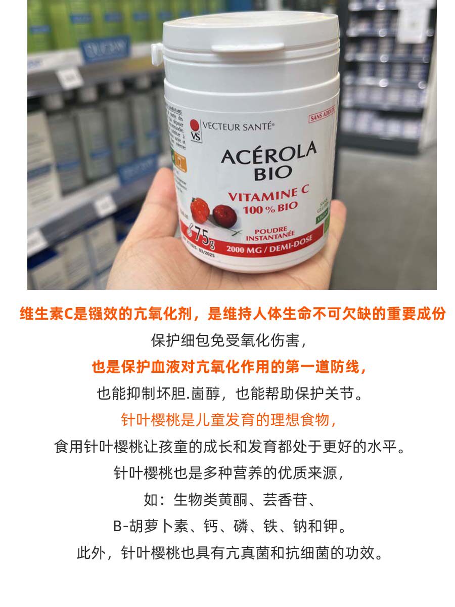 📚 法国进口有机樱桃粉VC速溶果粉维生素C胶囊儿童中老年增强免疫力