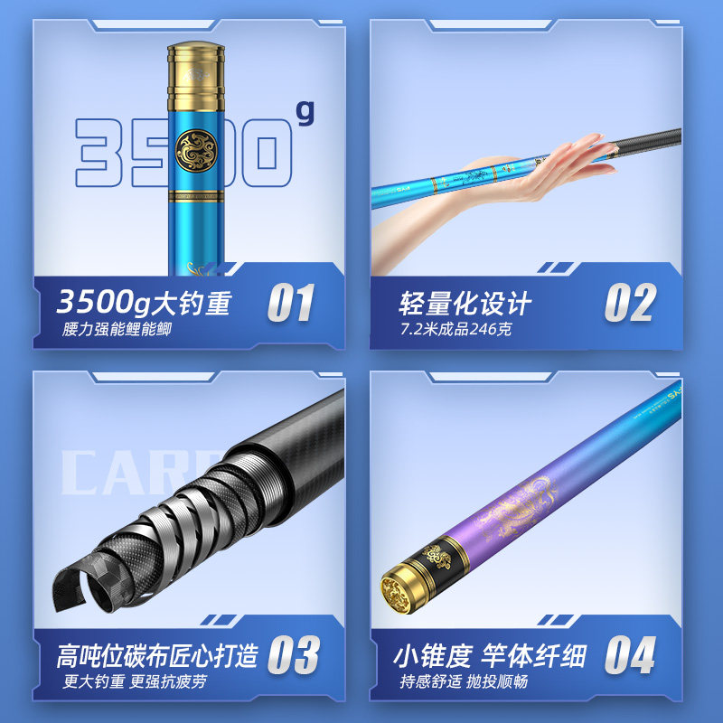 📚 浮烟山子龙柒杀鱼竿鲫鱼竿手竿超轻超细超硬名牌杆轻量版小综合竿