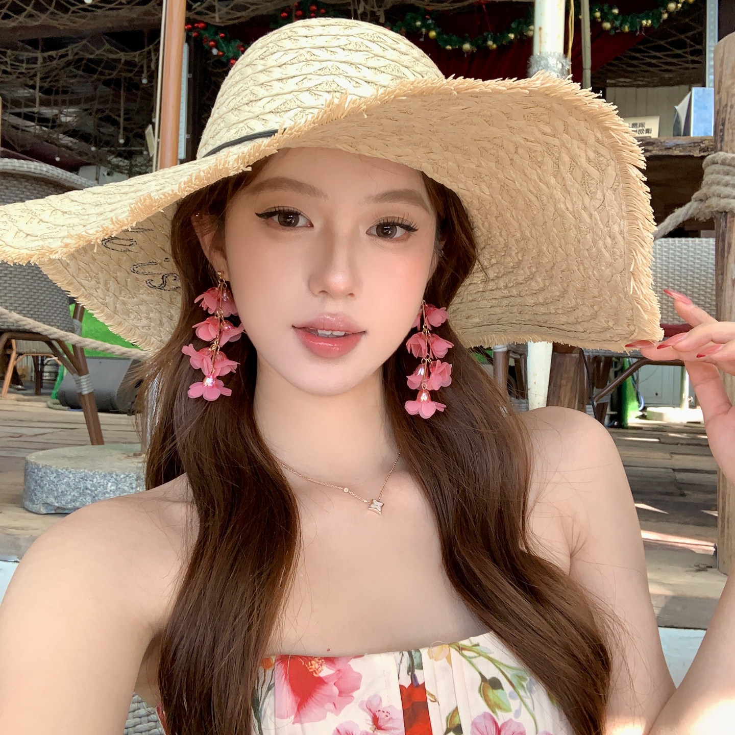 📚 【蜜桃茶】恋爱告急 粉色铃兰花流苏耳环独特夸张漂亮海边度假风