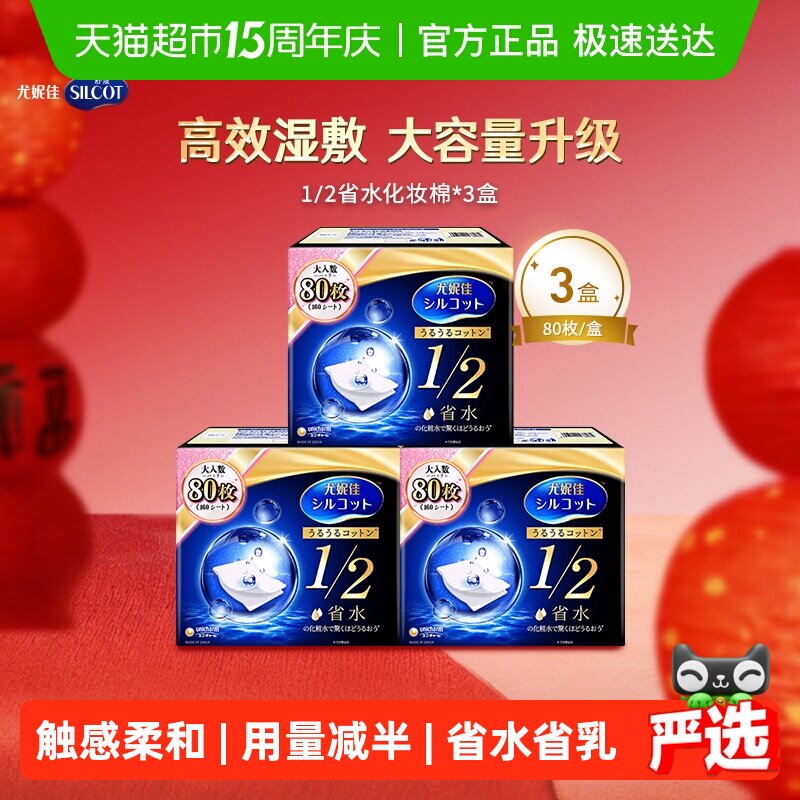 📚 Silcot/舒蔻尤妮佳化妆棉1/2省水湿敷专用卸妆棉补水吸收80片*3盒