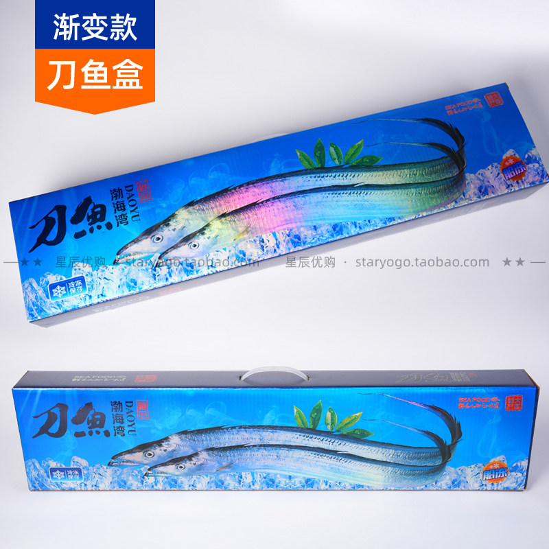 📚 高档渐变渤海湾刀鱼手提箱款瓦楞包装礼品盒 大带鱼小船刀鱼盒
