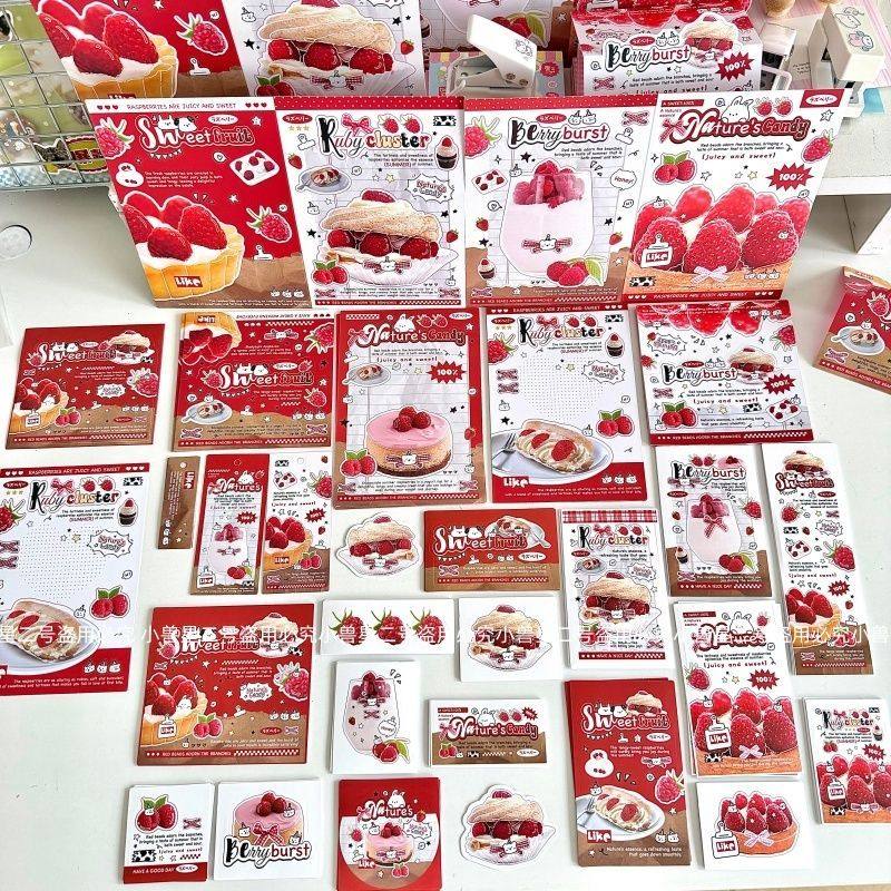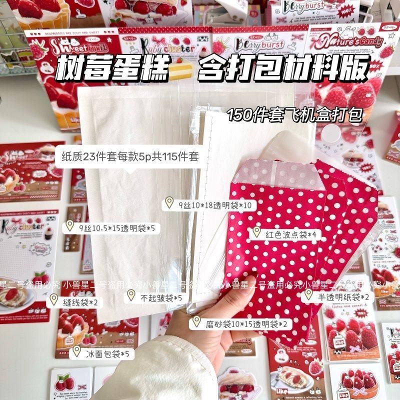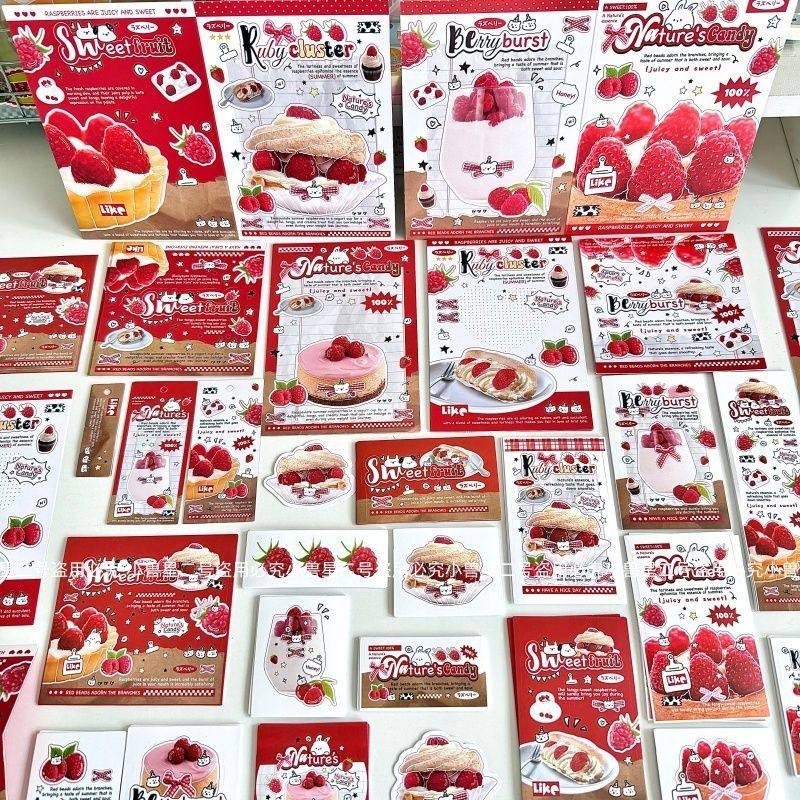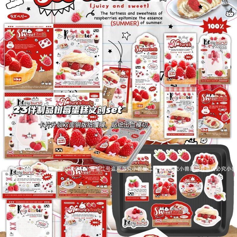 📚 小兽星D家文创SET覆膜ins风树莓蛋糕贴纸包卡头折页打包套装贴纸