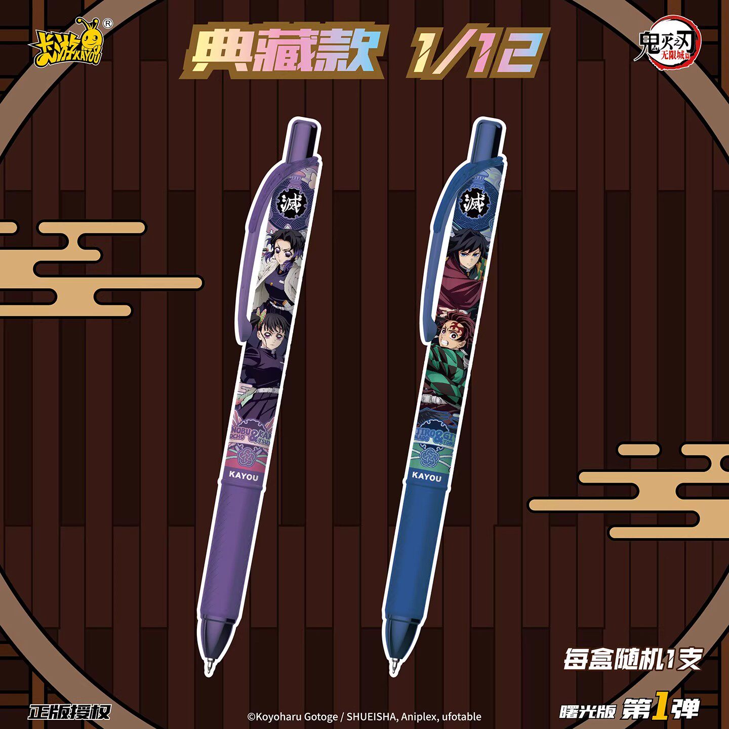 📚 卡游鬼灭之刃盲盒笔中性笔周边文具黑色签字笔正版学生文具按动