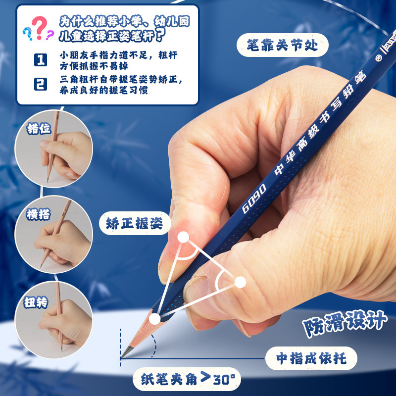 📚 中华牌防滑正姿铅笔6090小学生专用一年级幼儿园儿童初学者2H铅笔六角杆矫正握姿hb书写练字安全无毒环保文具