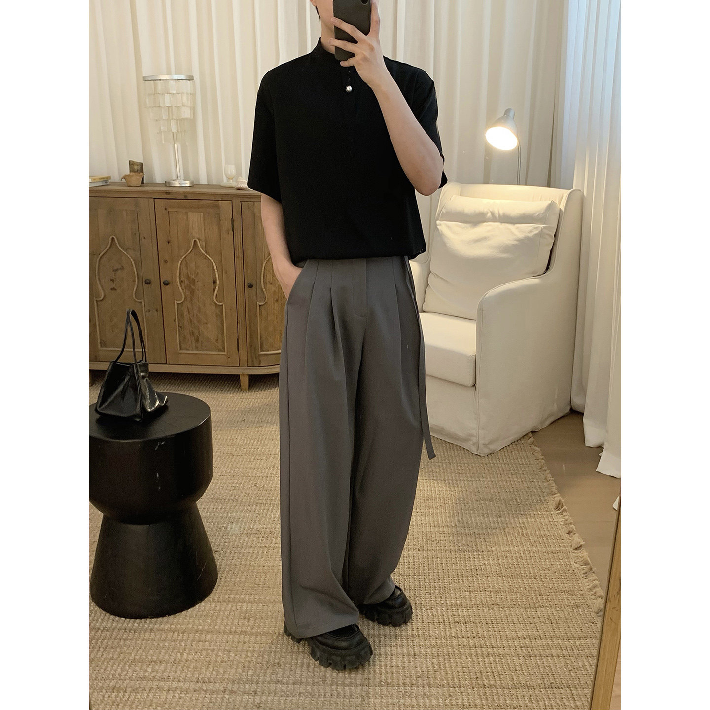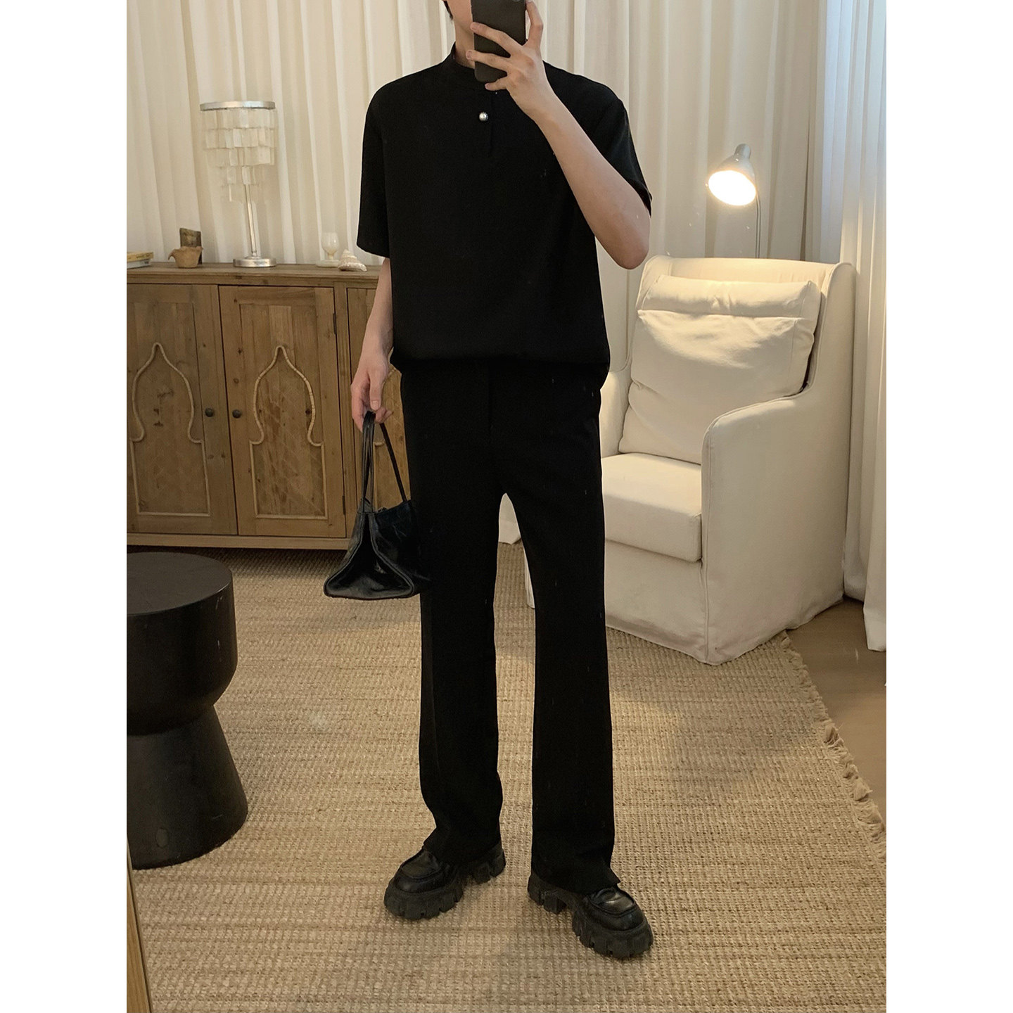 89¥ CZ321 oxXp5ShBzbv¥ https://m.tb.cn/h.ir9MVP7 阿茶与阿古黑色一粒扣短袖衬衫男款夏季潮流垂感宽松休闲气质衬衣 --------------------- 【原售价】159元 【现售价】159元。