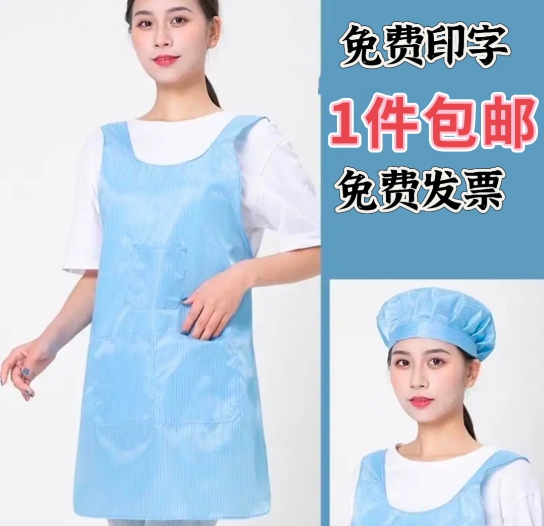 📚 防静电围裙无尘车间电子纺织厂食品工厂挡车工蓝色围裙男女绣印字