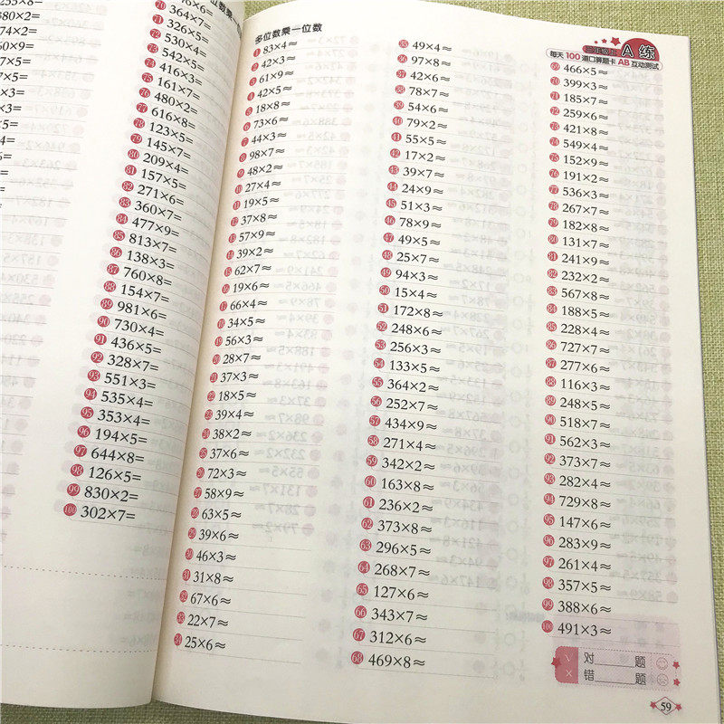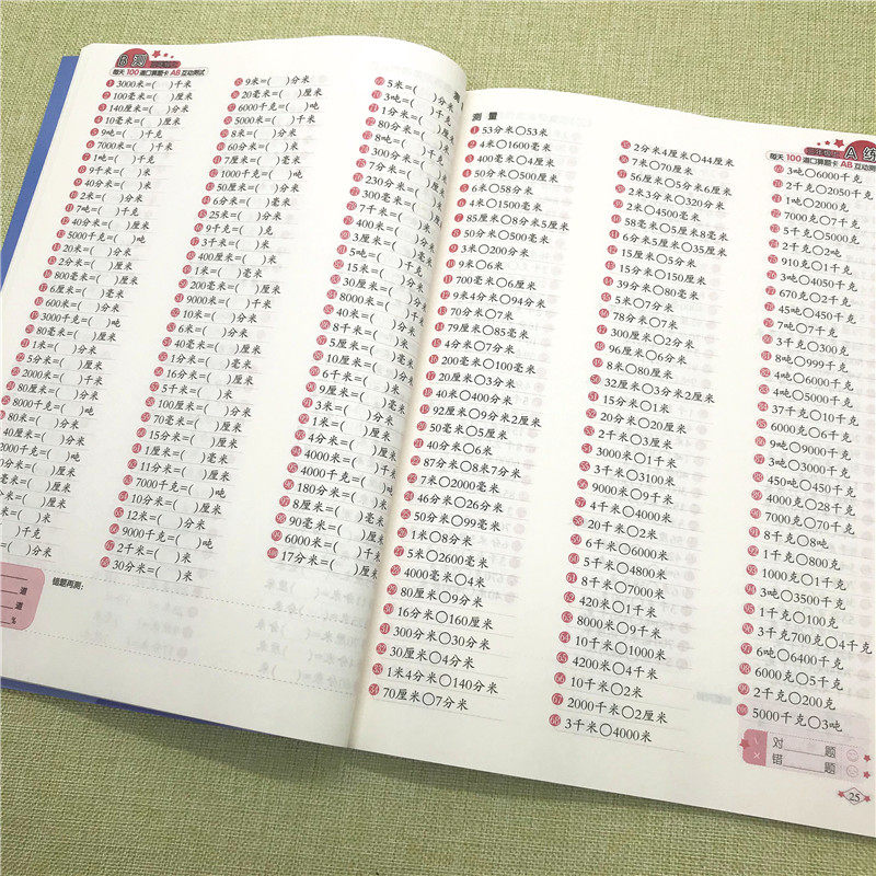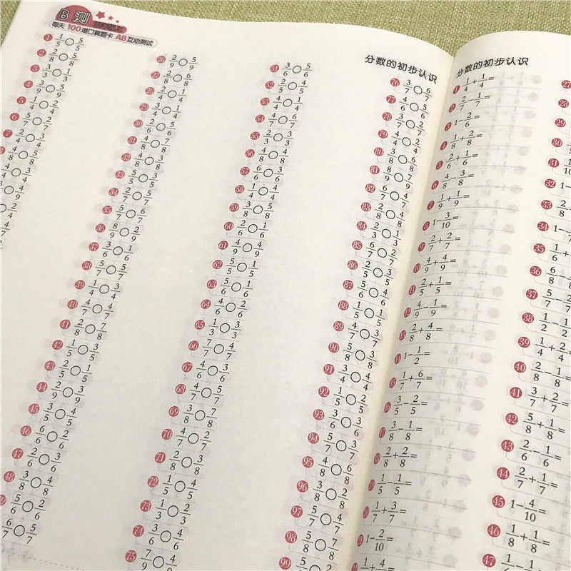 📚 小学生数学口算题卡三年级上册人教版时间测量倍数分数万以内数的加减法混算算术本3年级每天100道AB互动测试口算心算天天练