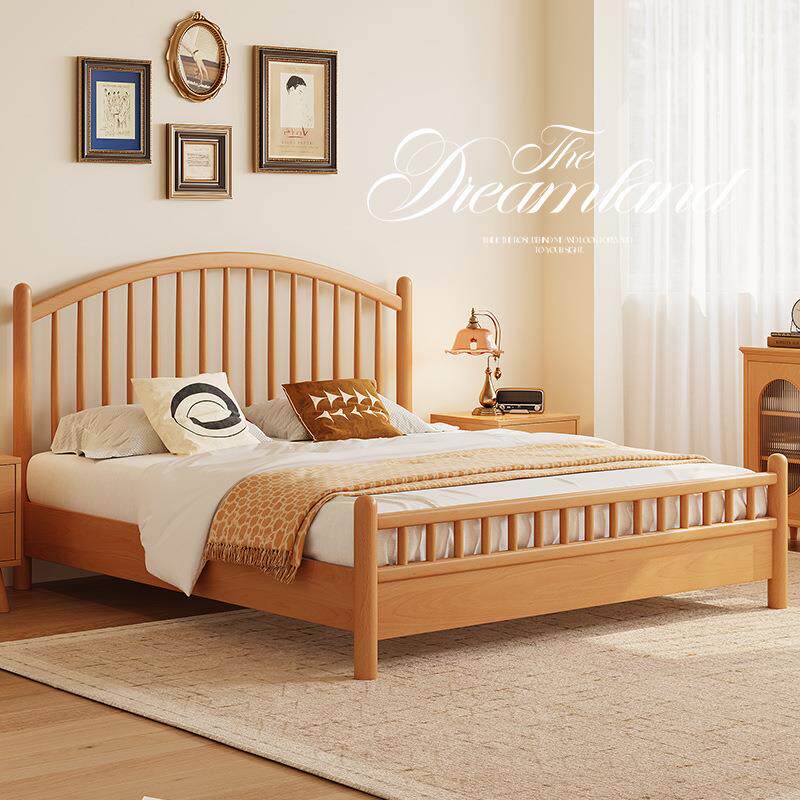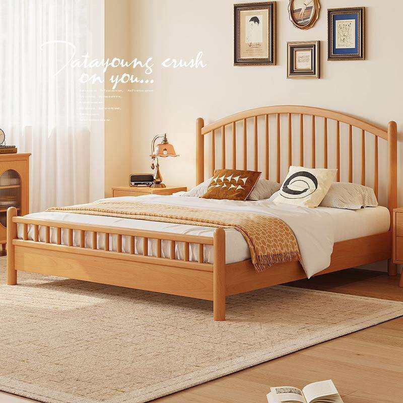 📚 榉木色木床1米8的床实木床现代简约家用卧室双人床床加床垫实木床