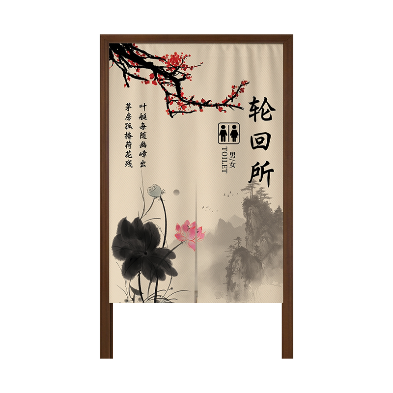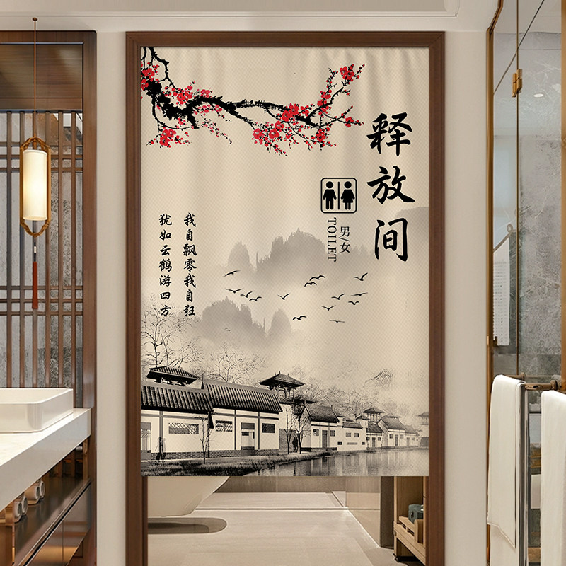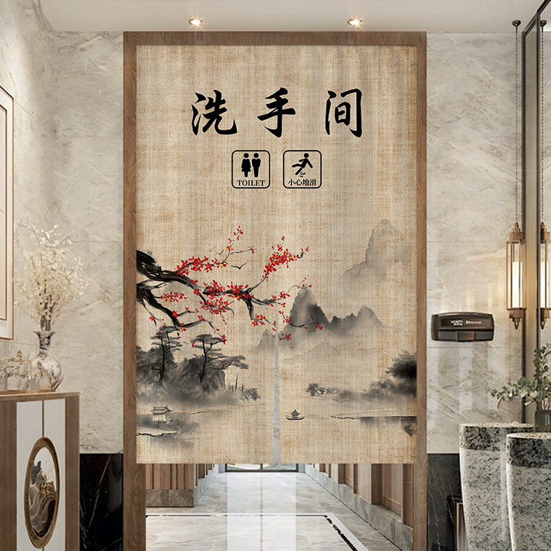 📚 中式卫生间门帘隔断帘商用布帘定制饭店洗手间专用挂帘厕所遮挡帘
