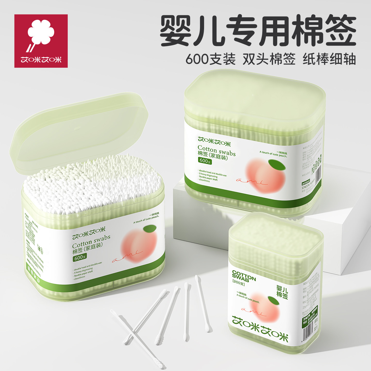📚 婴儿棉签纸棒小棉棒耳勺头盒装宝宝掏耳朵化妆专用新生儿清理耳鼻