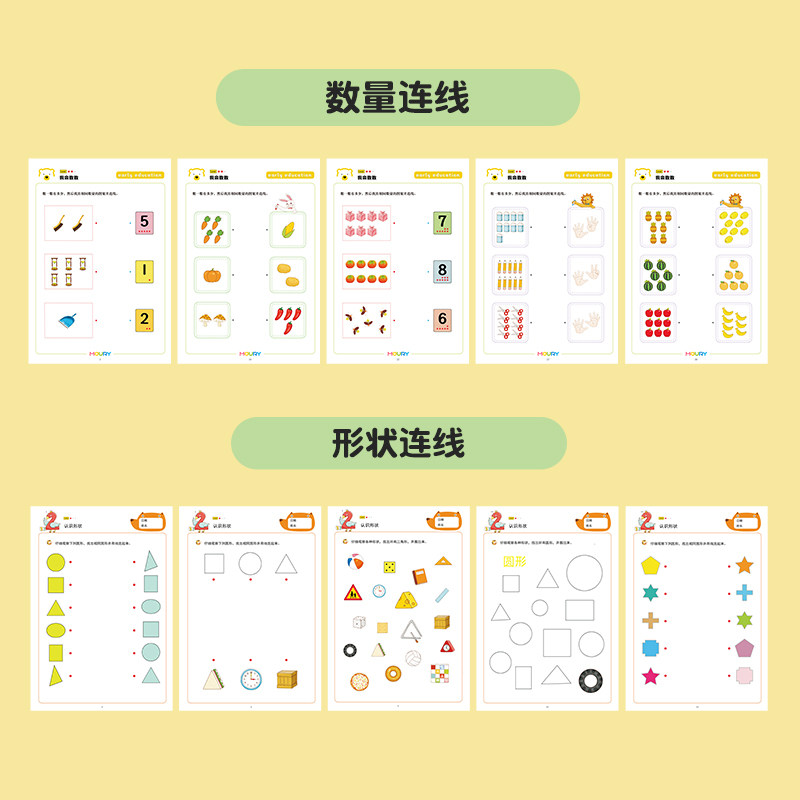 📚 儿童连线找相同数量形状配对2-6岁幼儿园宝宝连一连益智玩具画本