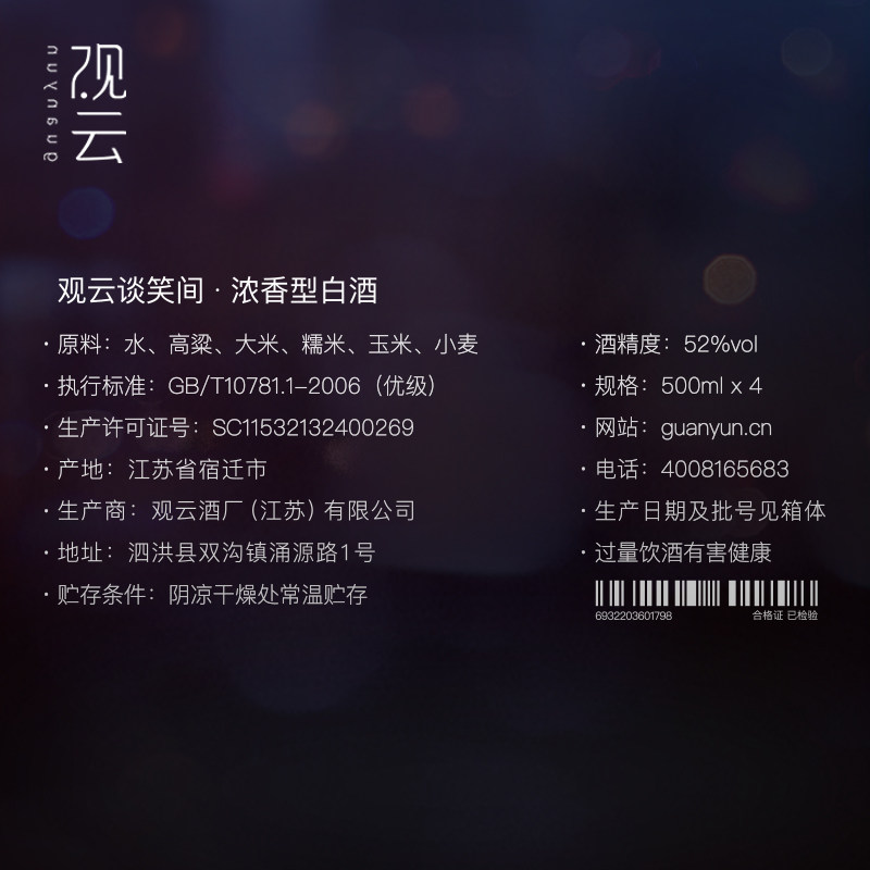 📚 观云白酒谈笑间52度箱装浓香型高度白酒聚餐送礼