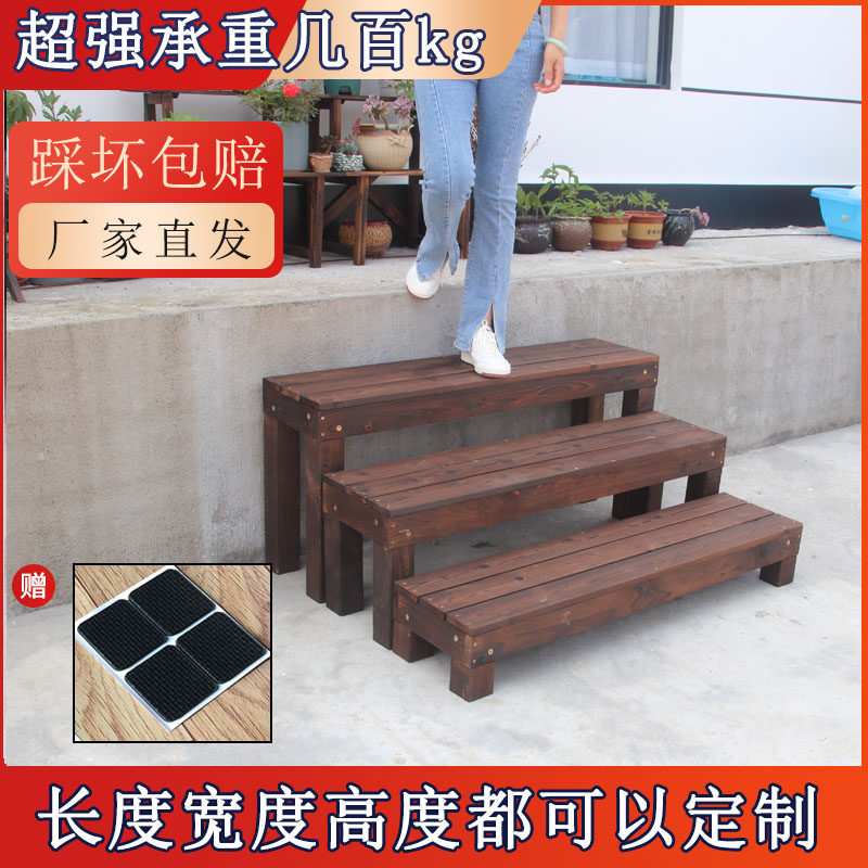 📚 碳化防腐木制脚踏凳垫脚踩脚板实木台阶办公放脚凳垫高板踏脚凳子
