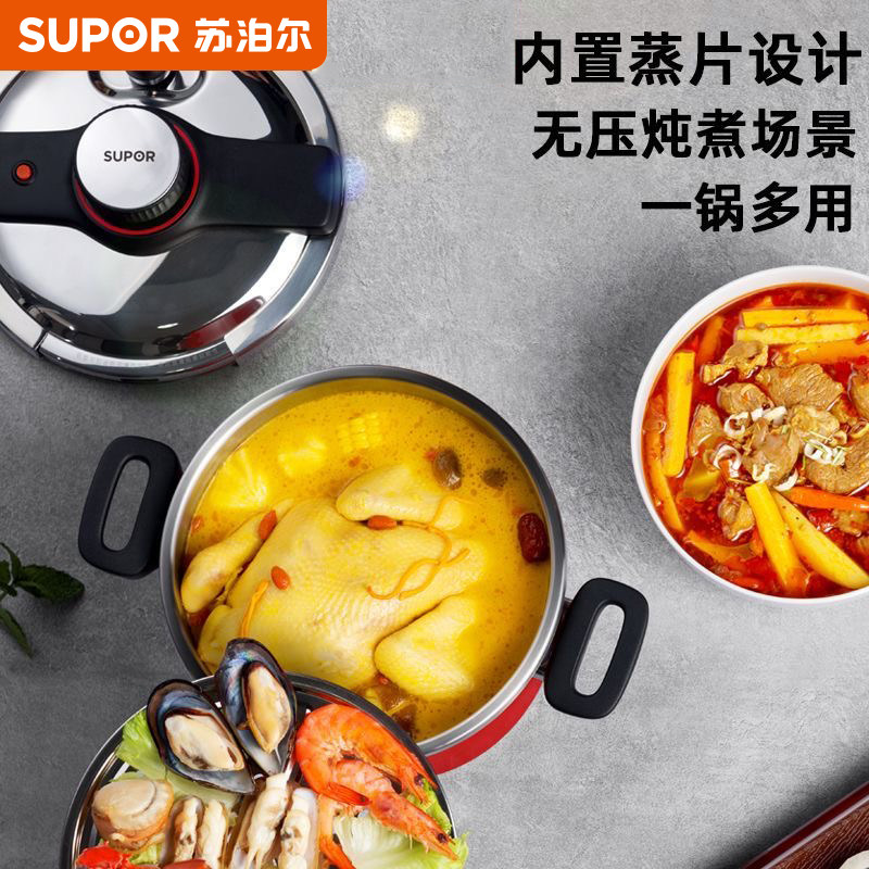 📚 苏泊尔悦旋压力锅304不锈钢100KPa高压家用高压锅燃气电磁炉适用