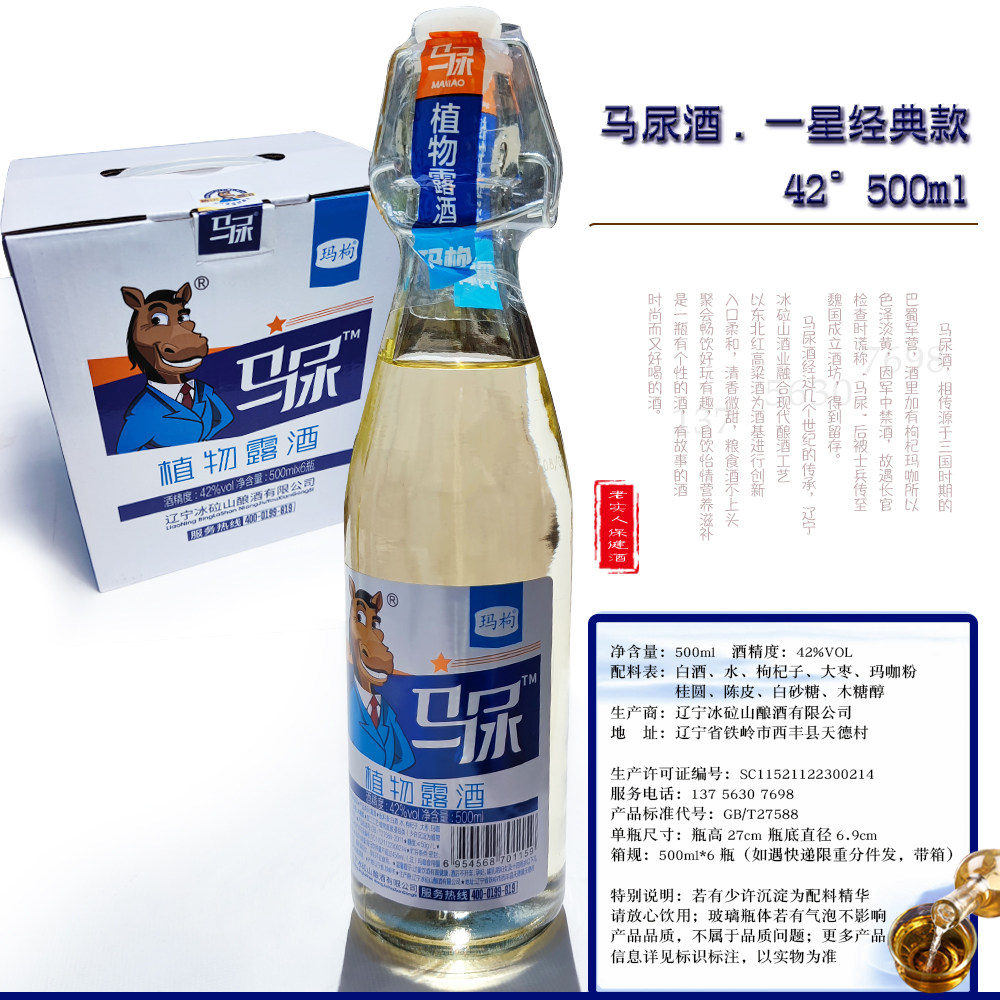 📚 辽宁马尿酒42度500ml整箱6瓶玛咖枸杞高梁酒网红特产玛枸植物露酒