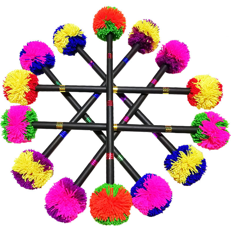 📚 双色老北京健身打花棍小摇舲 60厘米花杆 儿童老人打龙凤棍毛线球