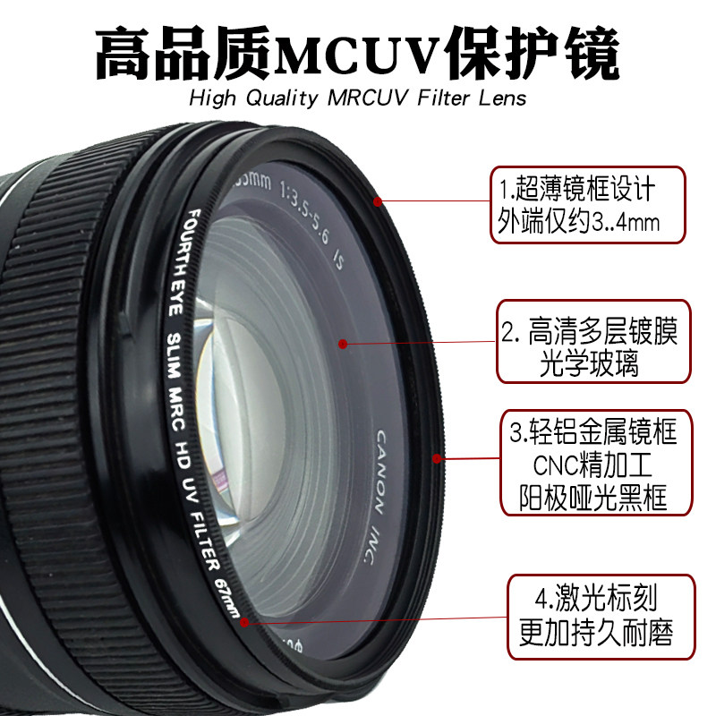 📚 Fourth Eye超薄高清UV滤镜37/49/52/58/62/67/77/82mm镜头保护镜