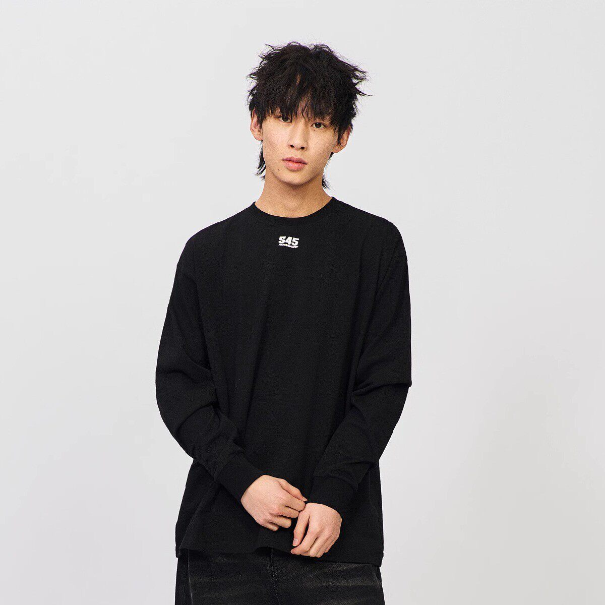 📚 S45基础纯色圆领休闲长袖男春季新款纯棉内搭t恤情侣宽松打底衫