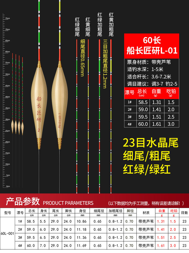 📚 船长匠研L01水晶尾黑坑偷驴行程接口高灵敏度手工芦苇浮漂
