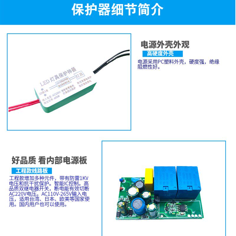 📚 LED灯具保护神器防微亮暗光频闪漏电保护开关LED吸顶灯电源护灯器