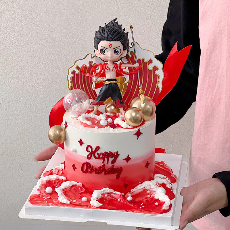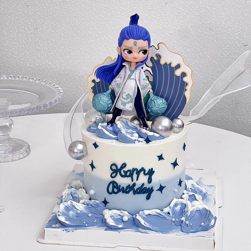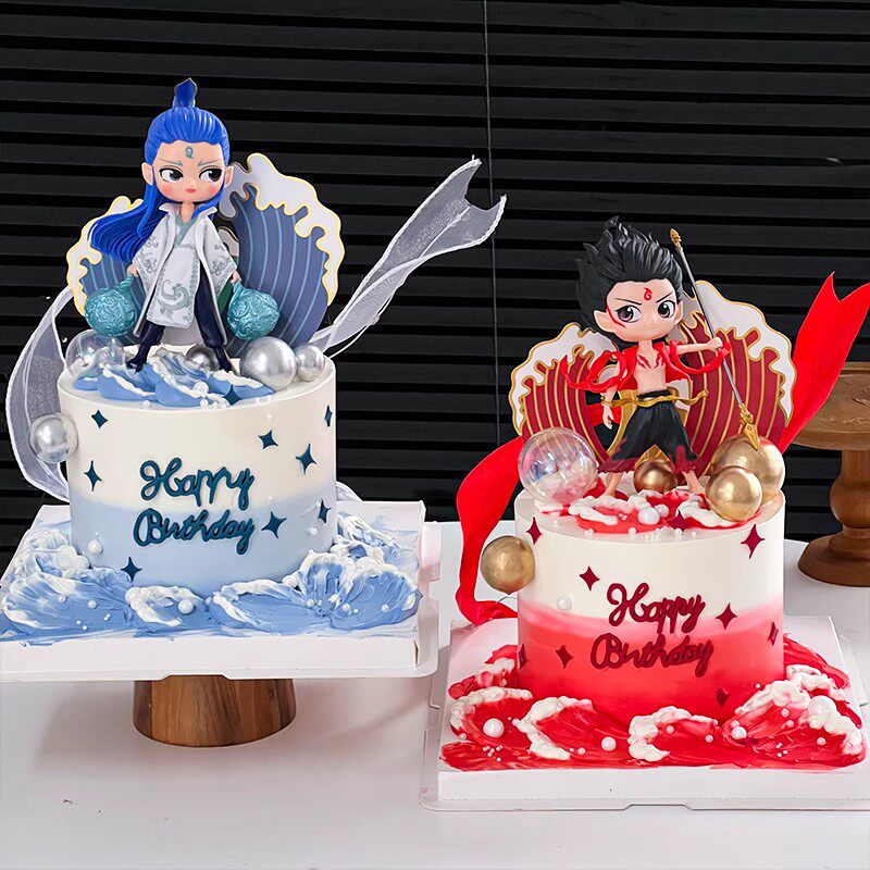📚 网红哪吒敖丙蛋糕装饰摆件海浪混天绫飘带男孩儿童生日装扮插件