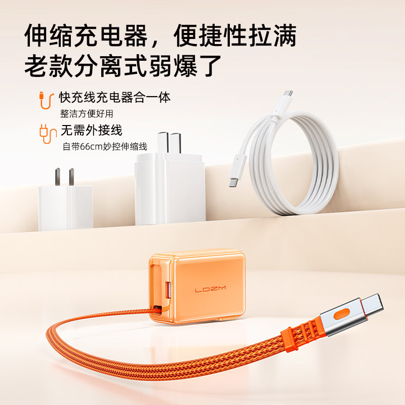 📚 【【iPhone17首选】乐迪智美新款氮化镓充电器伸缩线适用苹果安卓iPhone17ProMax自带数据线充电头抽拉式快充