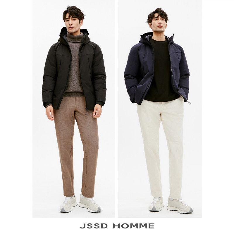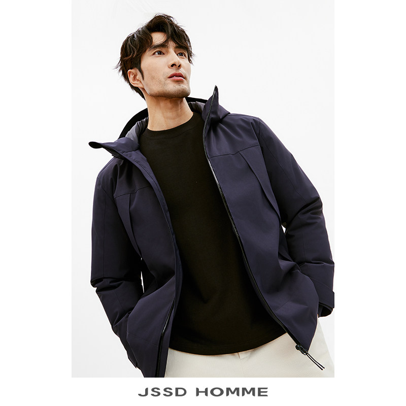 📚 JSSD HOMME 冬季新款日企防水面料连帽白鹅绒羽绒服男款羽绒外套