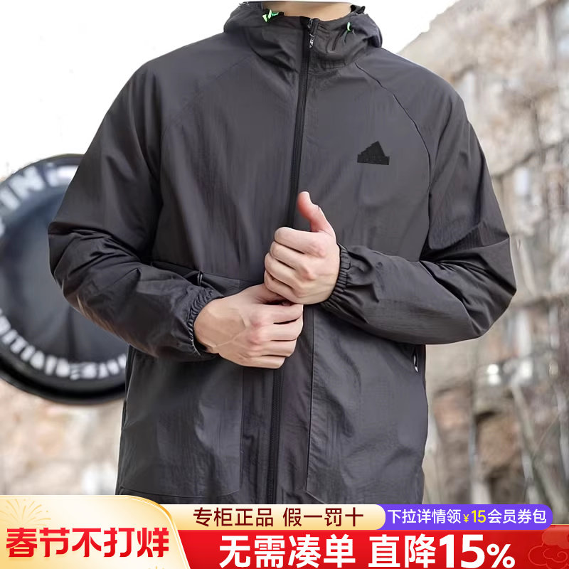 📚 阿迪达斯外套男秋季薄款防晒衣梭织防风夹克休闲运动皮肤衣JI8658