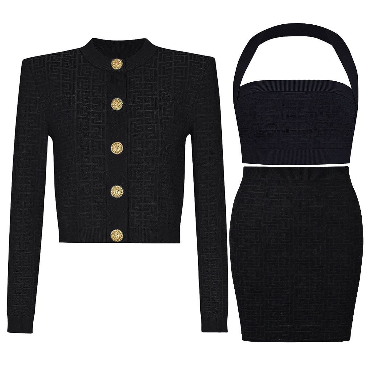 📚 娇媚千金来袭!女式时尚针织外套上衣+半身短裙+背心三件套套装