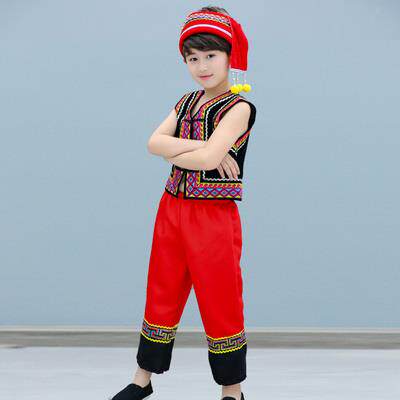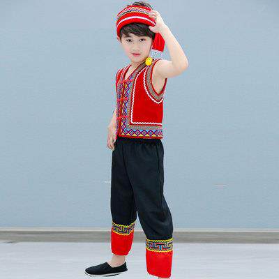 📚 高档六一儿童苗族演出服蹈壮族服装族少数民族舞哈傣尼族佤族男服