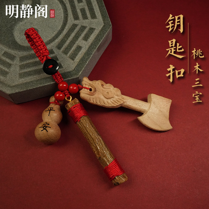📚 【龙虎山明静阁】天然桃木斧头钥匙扣挂件婴儿宝宝护身保平安挂饰