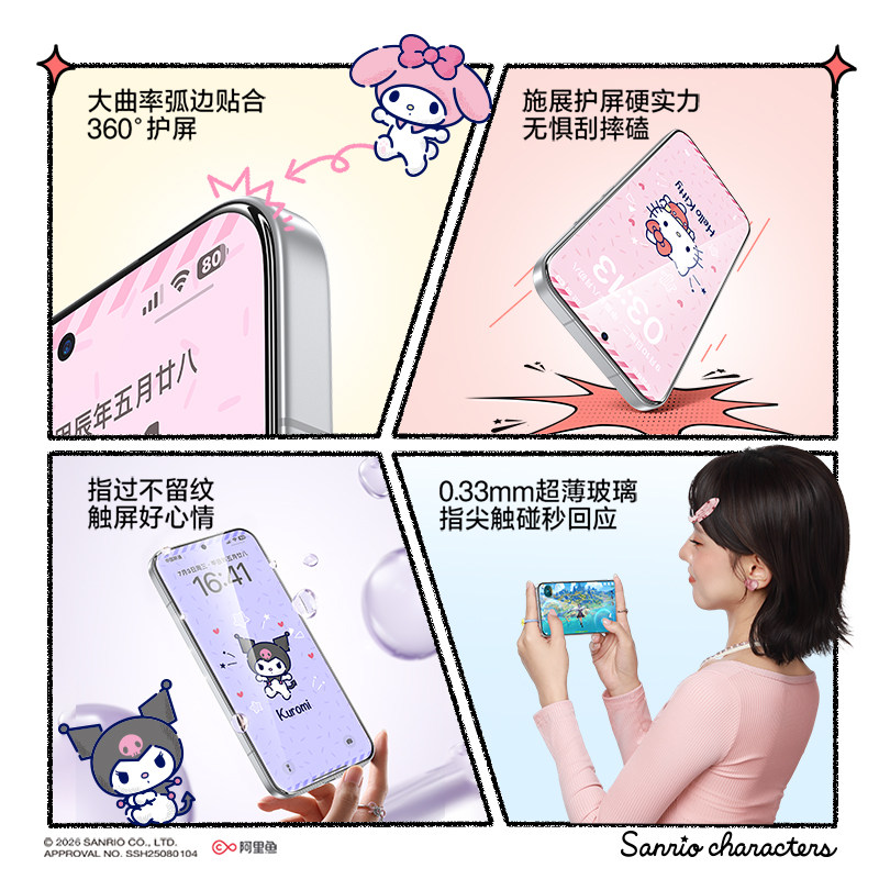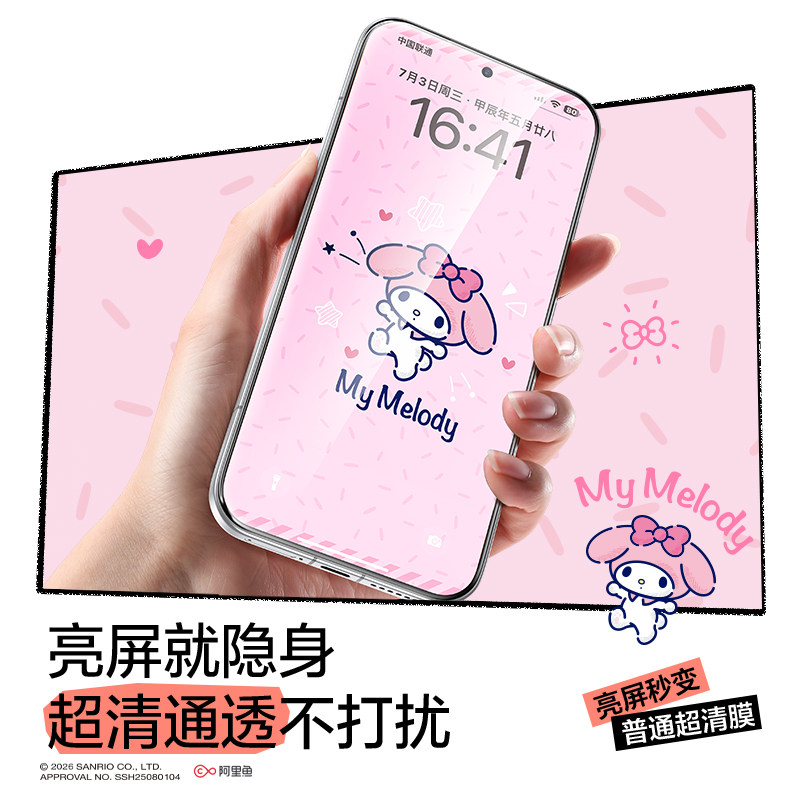 📚 【三丽鸥正版授权】闪魔三丽鸥息影膜适用小米17promax钢化膜vivox300pro手机膜oppofindx9pro全屏新款防摔膜