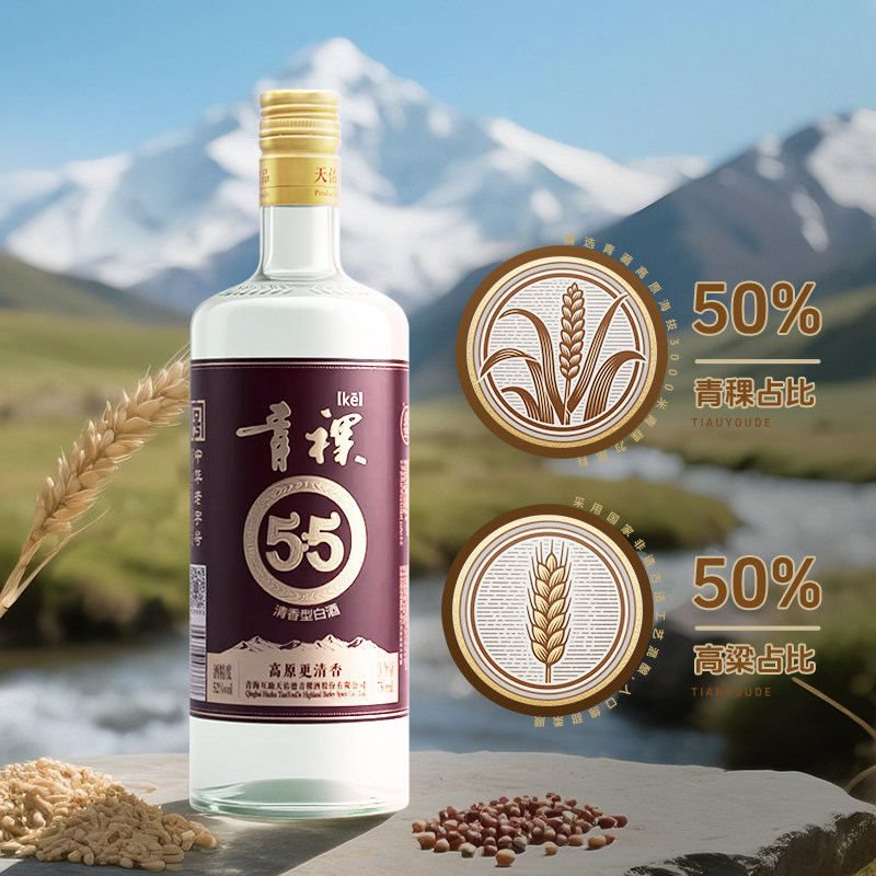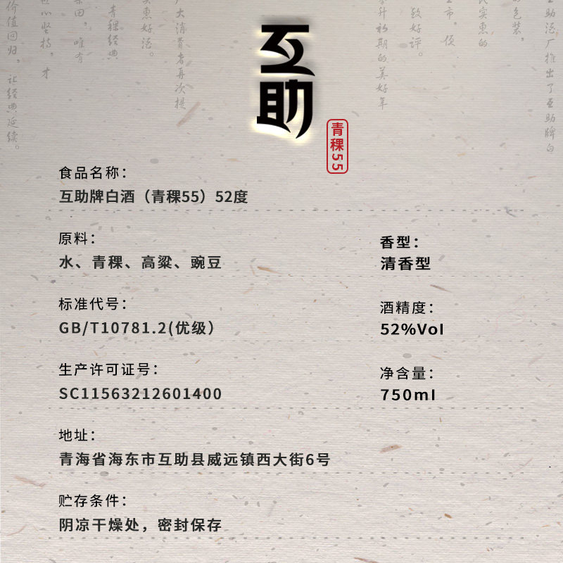 📚 互助青稞酒 青稞55清香型白酒52度750ml 实惠大瓶装口粮酒 老字号
