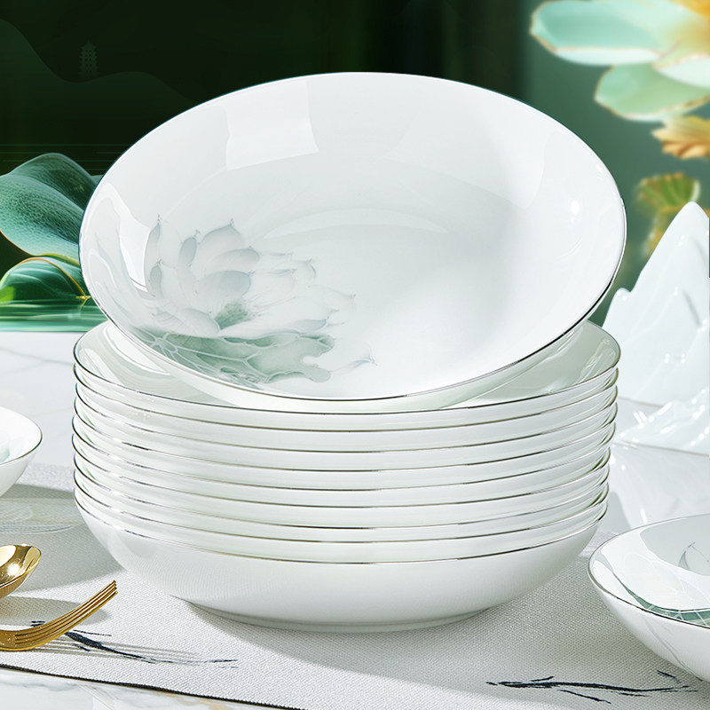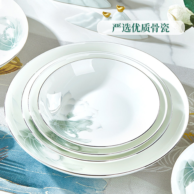 📚 骨瓷盘子菜盘家用2026新款陶瓷餐具高档轻奢简约银边碗盘组合套装