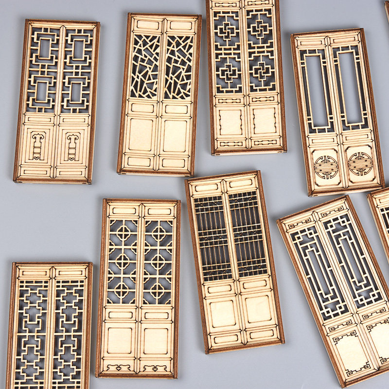 📚 沙盘建筑模型材料diy手工仿真室内家具复古中式木质活动门模型