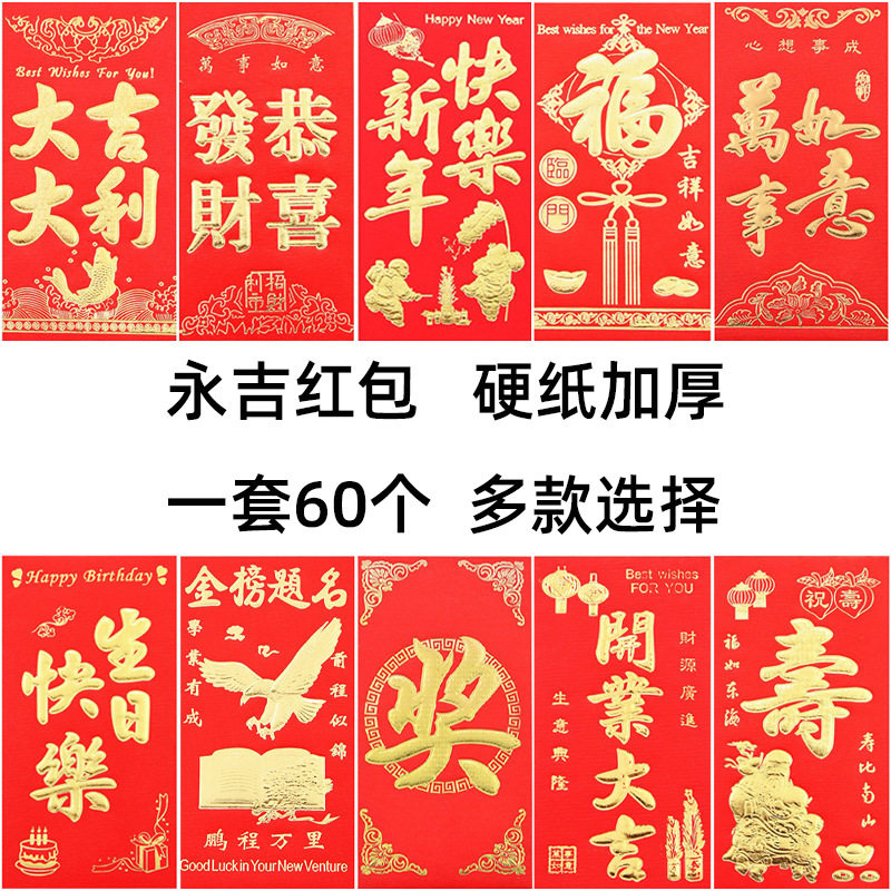 📚 60个永吉红包硬纸加厚烫金小号利是封结婚新年通用创意大号红包袋