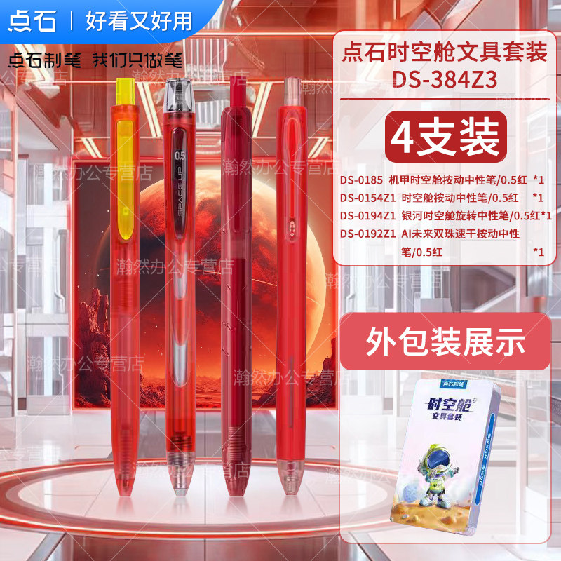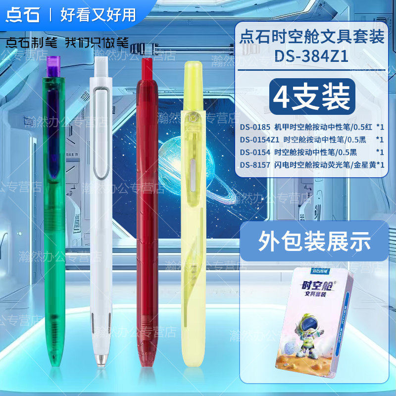📚 【限定新品】点石时空舱文具套装礼盒静音速干按动中性笔双珠太空舱开学文具生日礼物礼品批改红笔DS-384Z1