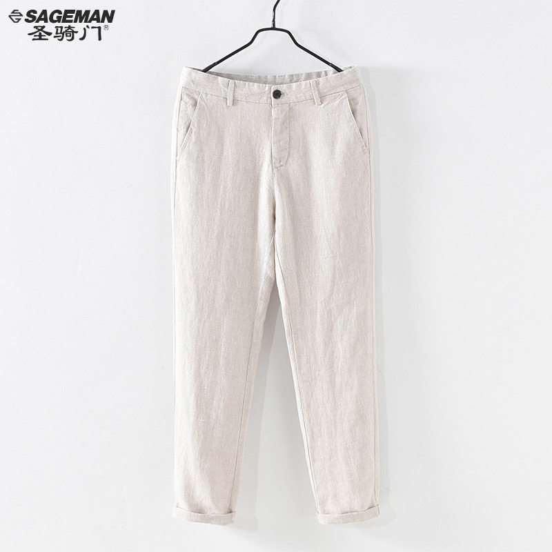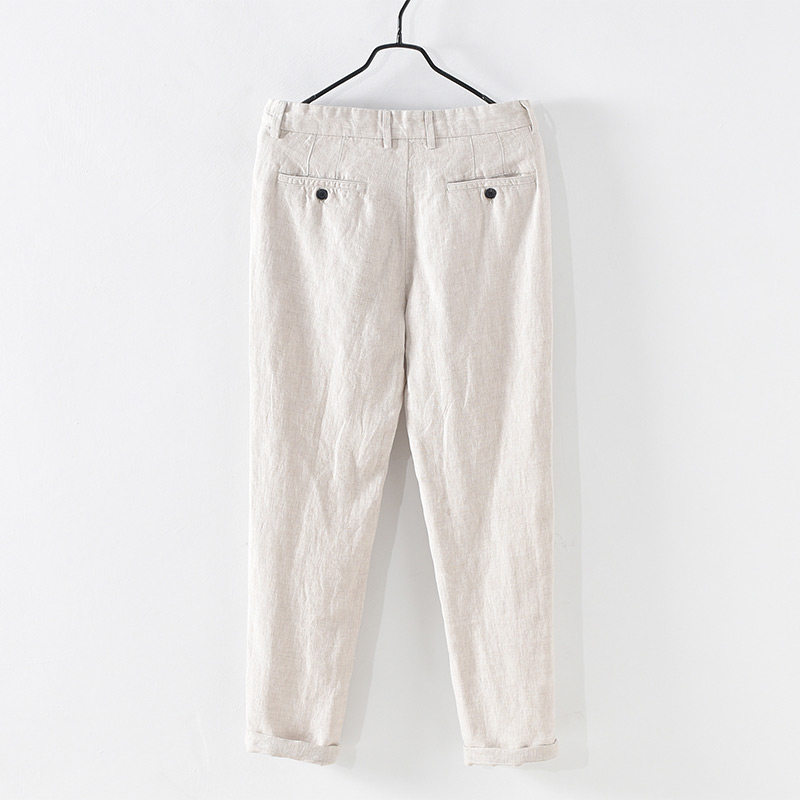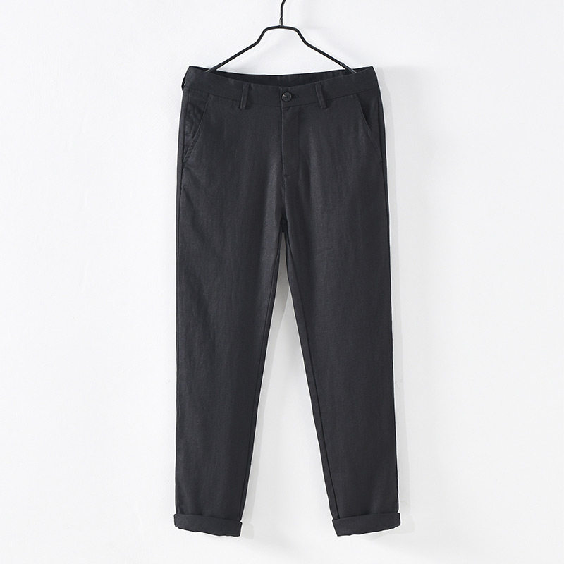 📚 亚麻裤男夏季薄款纯色百搭全麻休闲裤日系直筒宽松冰丝纯麻九分裤