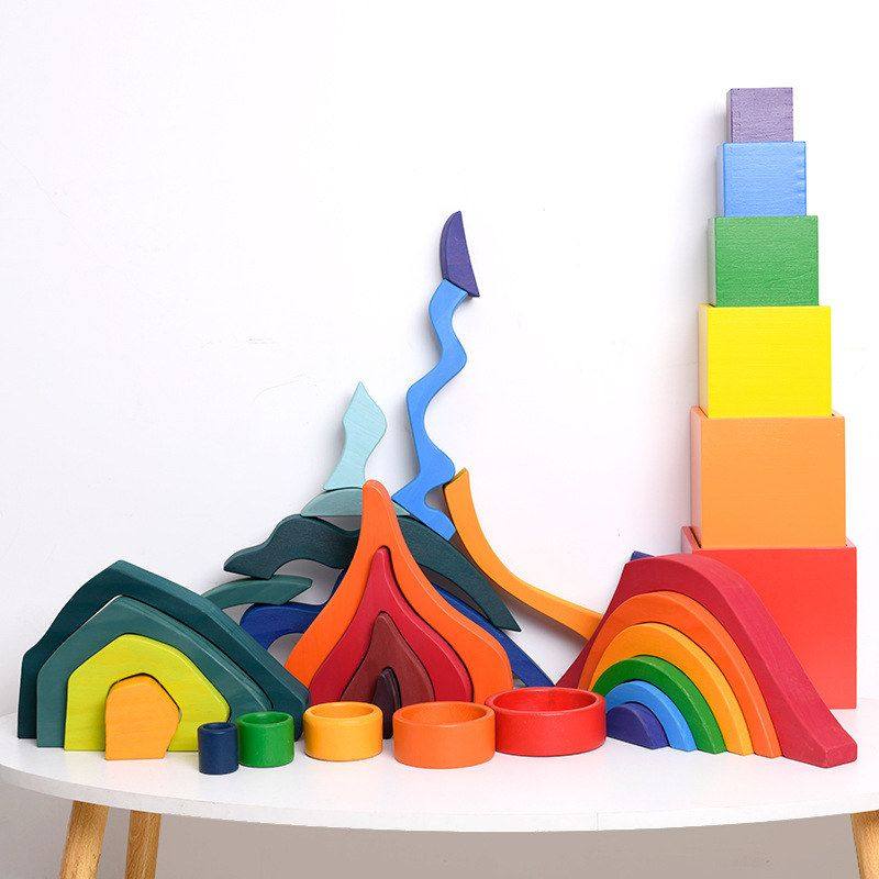 📚 新款木质儿童益智早教叠叠乐玩具实木拱桥形彩虹积木拼版彩虹塔