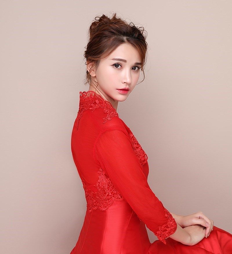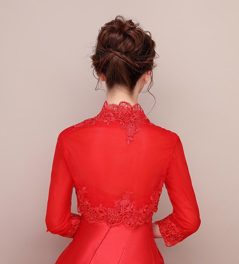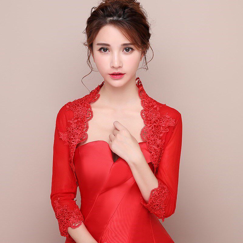 📚 长袖红色披肩婚纱新娘伴娘礼服旗袍外套大码白色礼仪年会披肩