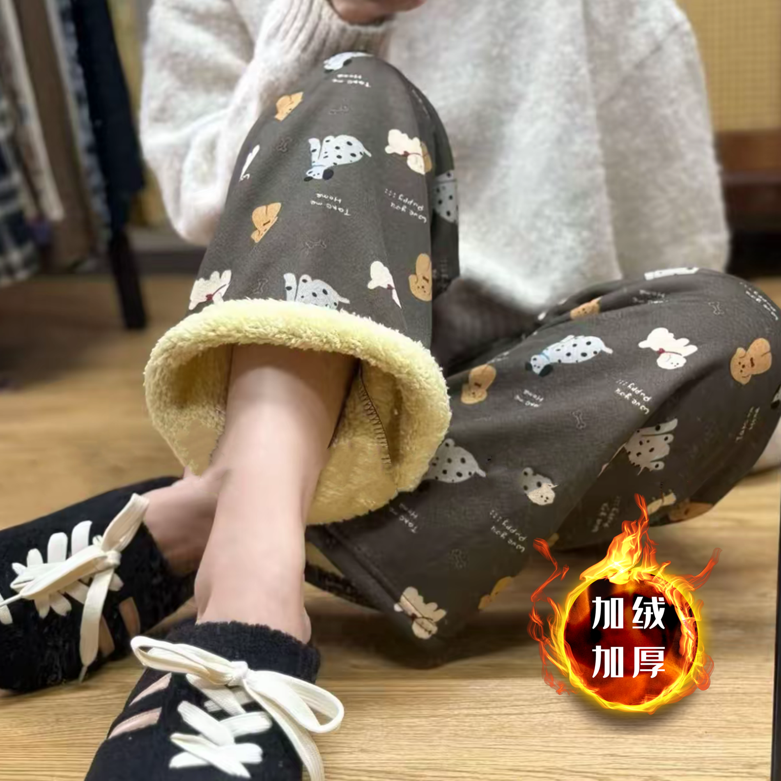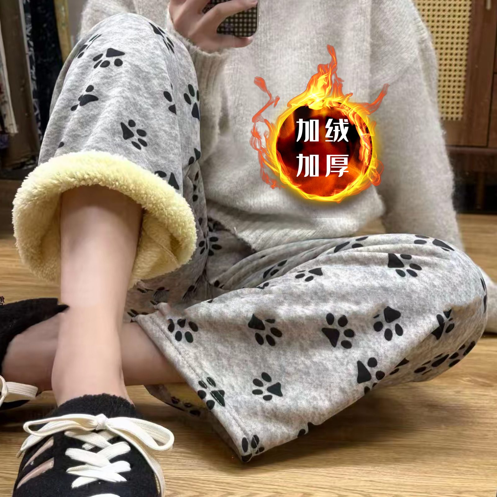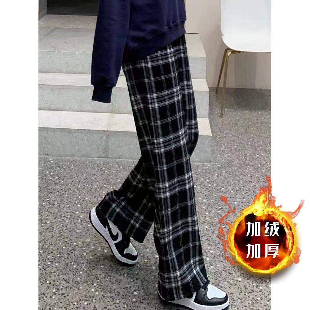 📚 羊羔绒加绒加厚格子裤子休闲裤女秋冬宽松直筒格子居家裤棉裤睡裤