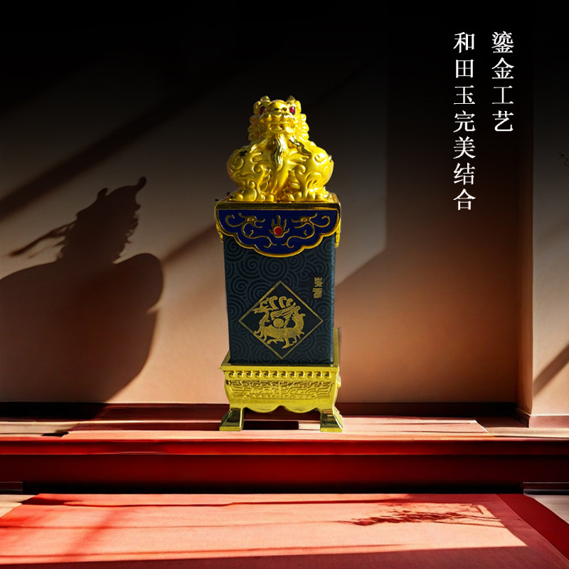 📚 天然和田青玉印章盘龙头金镶玉青龙神兽玉石姓名书画印章商务礼品